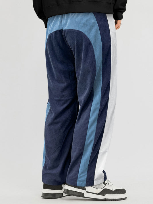 Camisa abotonada de pana con bloques de color y pantalones de pana de pierna recta