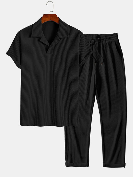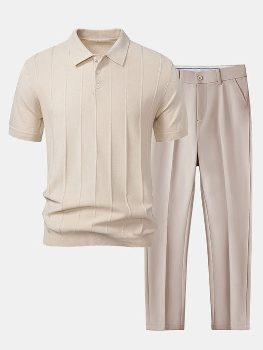 Polo de cuello cubano acanalado y pantalones rectos acanalados