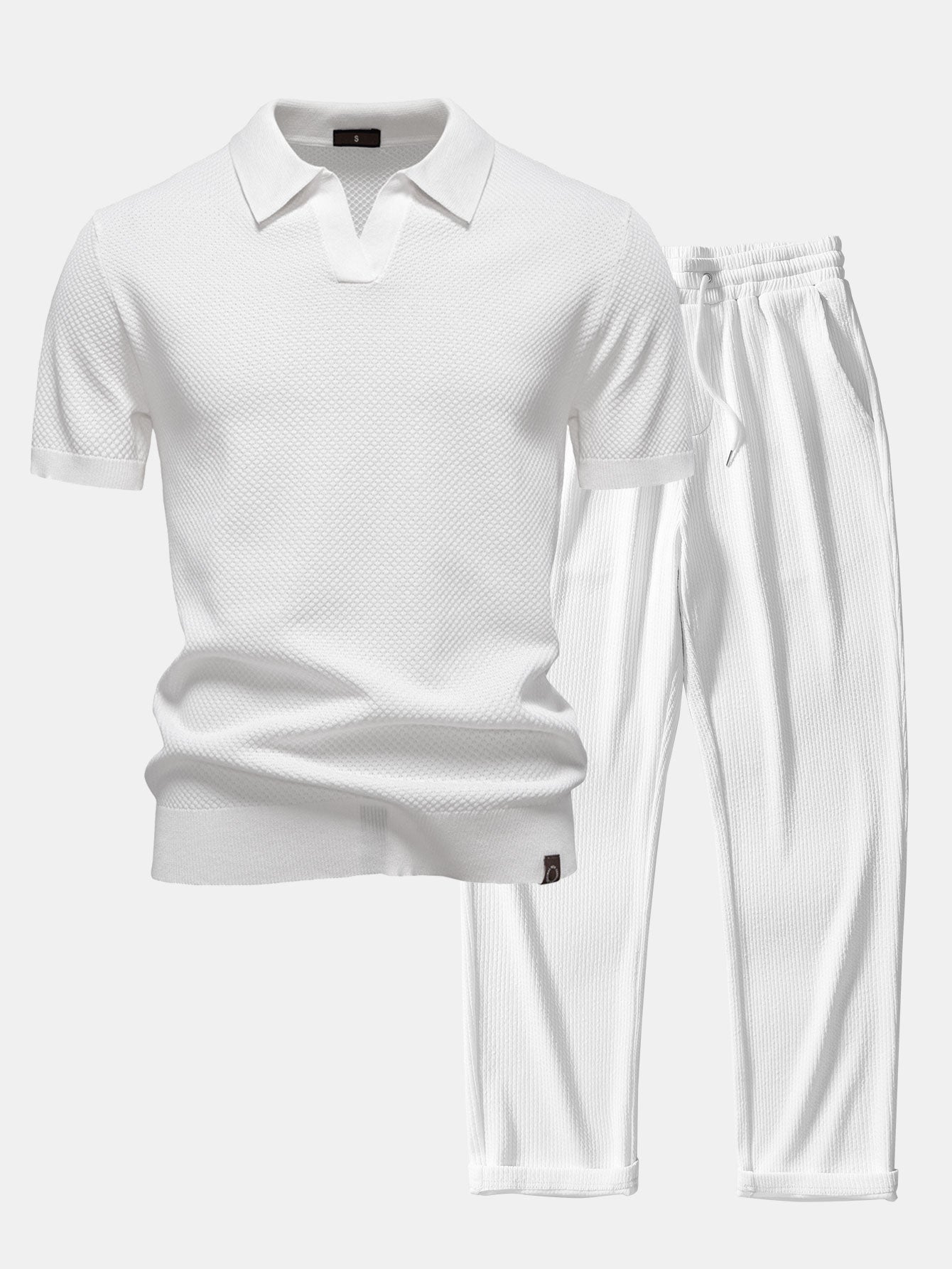 Polo de punto con textura de piña y cuello en V y pantalones rectos acanalados
